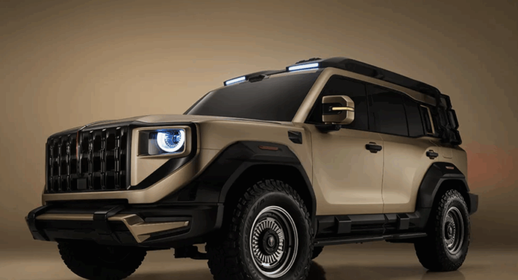 The SUV made its global debut at the 2025 Shanghai Auto Show and was later showcased in a military-themed concept version at the 2025 Chengdu Auto Show. Design-wise, the model draws inspiration from ancient Chinese wooden architecture with mortise-and-tenon elements. The front fascia features a seven-vertical, two-horizontal grille combined with round headlights in square housings, giving it a powerful presence. The camouflaged concept car further emphasized this rugged style with add-ons such as a crash bar, tow hooks, partition ropes, a roof rack, spotlights, a rear-mounted utility pack, and off-road AT tires. It is expected that multiple customized versions will be offered when the production model launches.